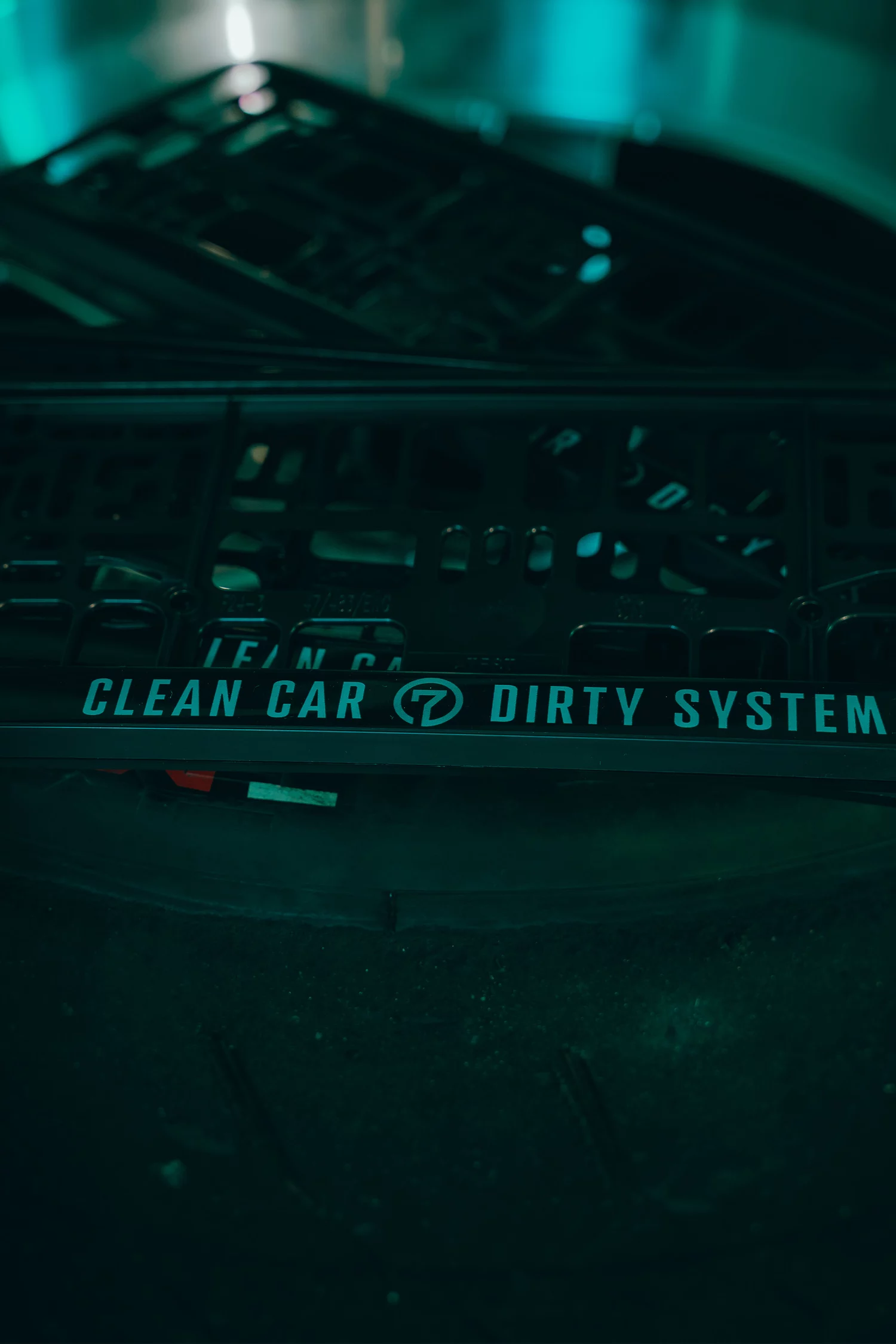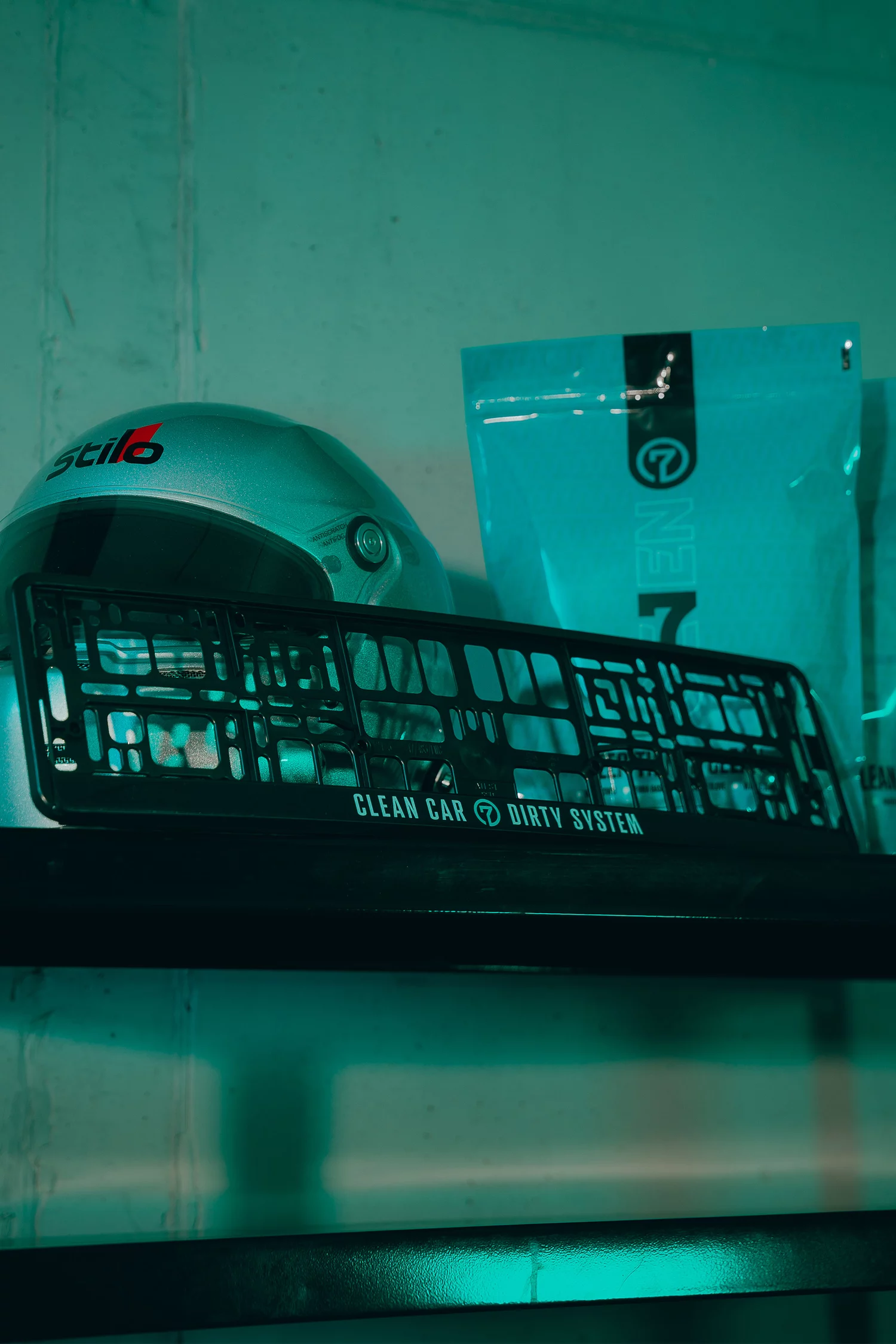 Kennzeichenhalter “Clean Car, Dirty System” – Ein Detail, das den Unterschied macht. Für alle, die es unter der Haube sauber haben, aber nach außen eine klare Botschaft senden wollen. Stilvolles Accessoire mit SEVEN-Slogan.